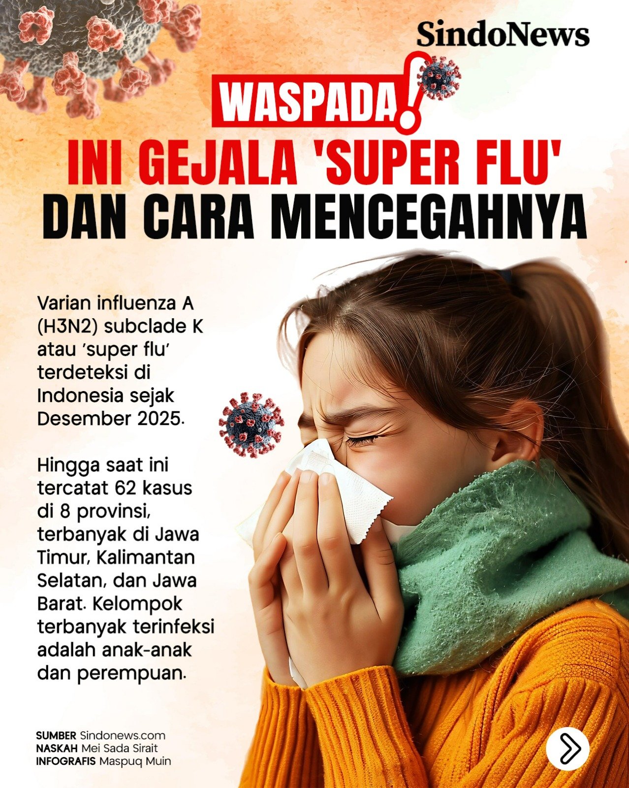 Kementerian Kesehatan RI baru-baru ini mengumumkan bahwa varian influenza A (H3N2) subclade K yang sering disebut “super flu” telah terdeteksi di Indonesia sejak pertengahan Desember 2025.
