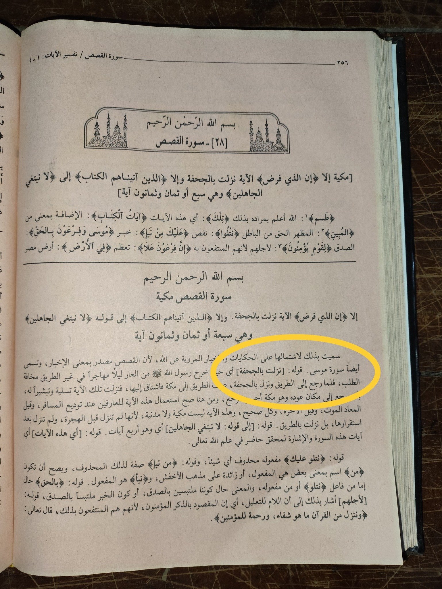 Nama-nama surat dalam Al-Quran itu tidak hanya satu, satu Surat terkadang memiliki nama lebih dari satu, termasuk surat “Al Qoshos” ini yang dalam tafsir Ashowi yang memiliki lain Surat “Musa”.