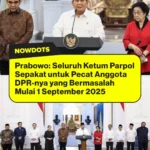 Ketum Partai Kompak Pecat Anggota DPR-nya yang Bermasalah BERITA NASIONAL|Senin, 1 September, 2025Senin, 1 September, 2025oleh Admin Presiden RI Prabowo Subianto menyampaikan keputusan penting bahwa seluruh ketua umum partai