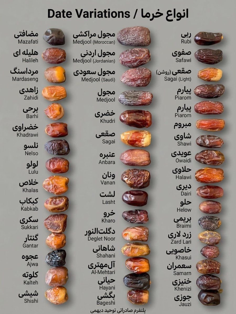 - Kurma Ruthob: Kurma muda yang masih basah, sangat lunak dan juicy (sering dari jenis Sukari atau Barhi).