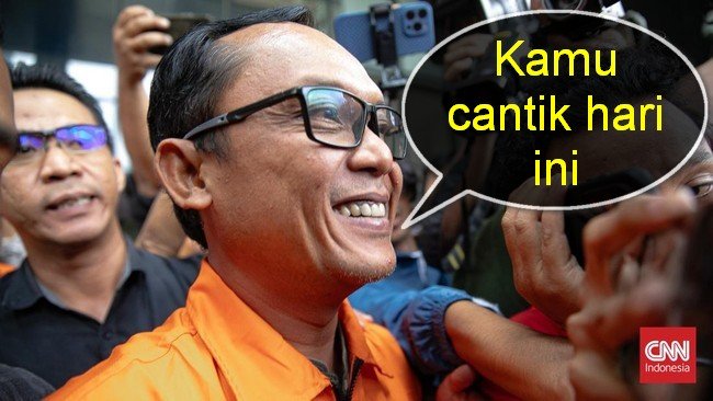 “Kamu cantik hari ini,” katanya sebelum masuk mobil tahanan di Gedung Merah Putih KPK, Jakarta, Kamis (11/12/2025).