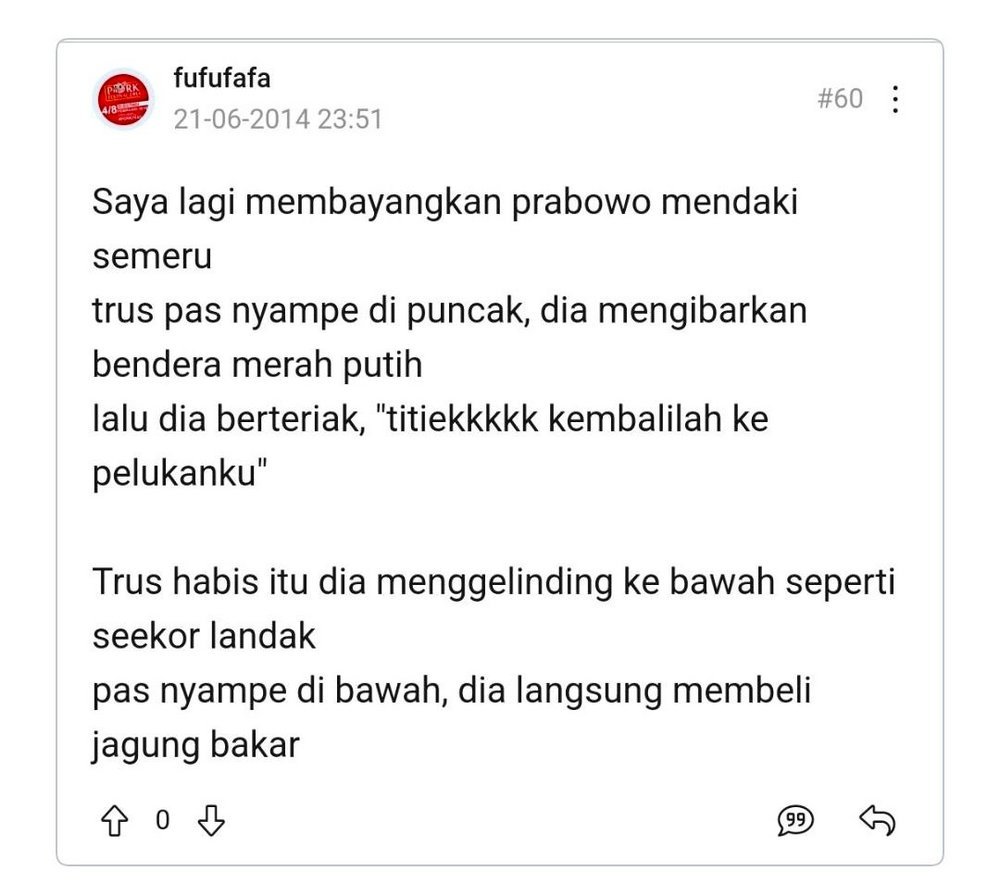 Ayolah, fufufafa itu dulu keji dan kejam sekali loh komen-komennya.