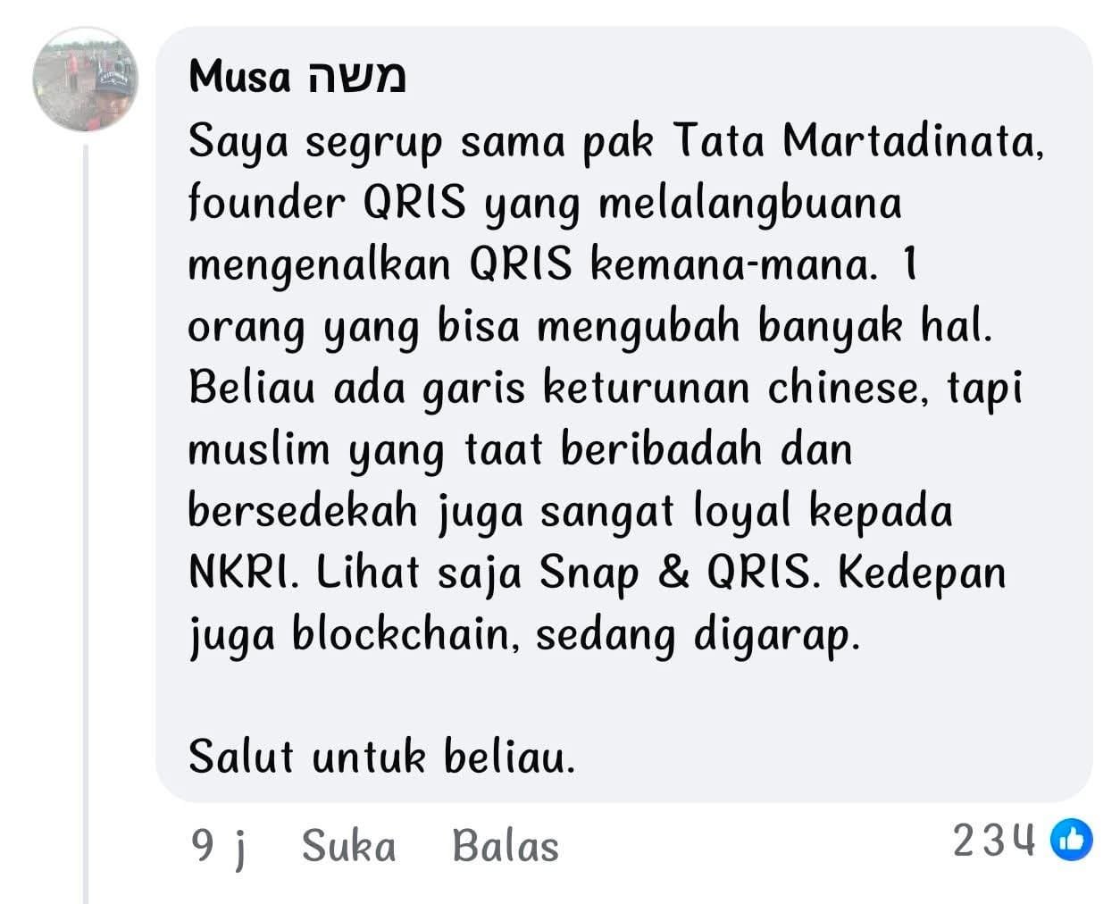 Tata Martadinata adalah Kepala Produk & Teknologi di Asosiasi Sistem Pembayaran Indonesia (ASPI), yang aktif dalam pengembangan dan promosi sistem pembayaran QRIS di Indonesia, termasuk fitur terbarunya seperti QRIS Tap NFC. Ia berperan dalam menjelaskan perkembangan dan kemudahan penggunaan QRIS kepada masyarakat dan pelaku UMKM, serta meluncurkan teknologi yang memudahkan transaksi.