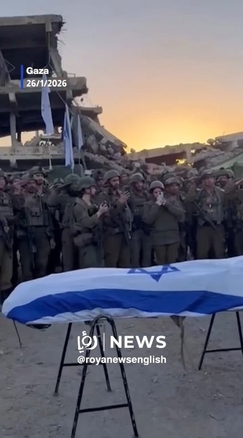 Rekaman yang diposting oleh juru bicara militer ‘Israel’ menunjukkan Kepala Staf Umum Angkatan Bersenjata Israel, Letnan Jenderal Eyal Zamir, bersama dengan perwira dan prajurit berpangkat tinggi lainnya, memberi hormat kepada jenazah Ran Gvili, tawanan terakhir yang ditahan di Gaza sejak 7 Oktober 2023.