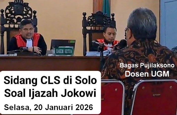 Saat Bagas Pujilaksono Widyakanigara, Dosen Fakultas Teknik UGM, tamatan Fakultas Teknik UGM 1988, angkatan 1983, yang menjadi saksi dalam sidang gugatan ijazah Jokowi di Pengadilan Negeri Solo, Selasa, 20 Januari 2026.