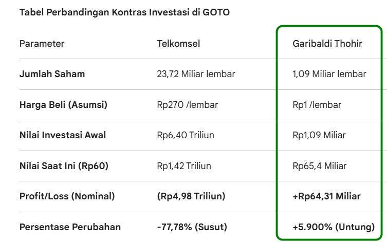 Ketika BUMN Telkom/Telkomsel rugi 78% di saham GOTO, kakak bekas Menteri BUMN Erick Thohir, yakni Garibaldi Thohir, malah cuan 5.900%.