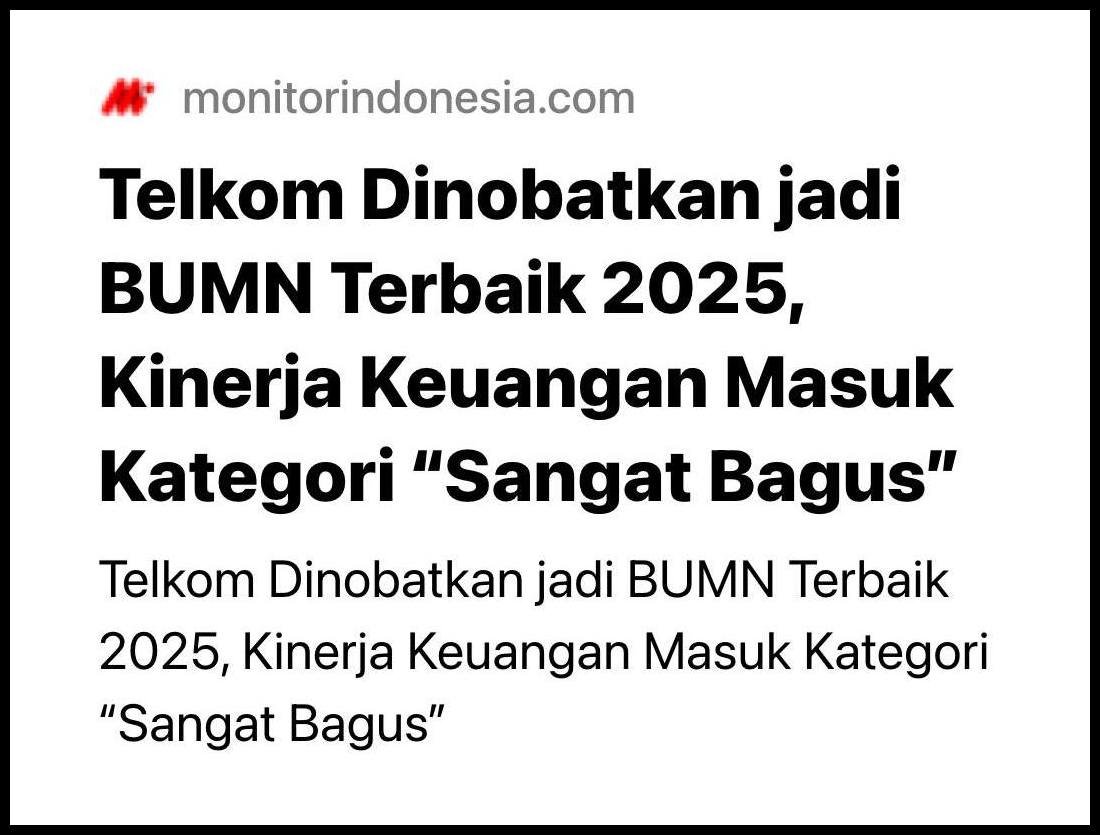 Saya membaca sebuah judul berita yang bombastis: “Telkom Dinobatkan Jadi BUMN Terbaik 2025, Kinerja Keuangan (2023–2024) Masuk Kategori ‘Sangat Bagus’.”
