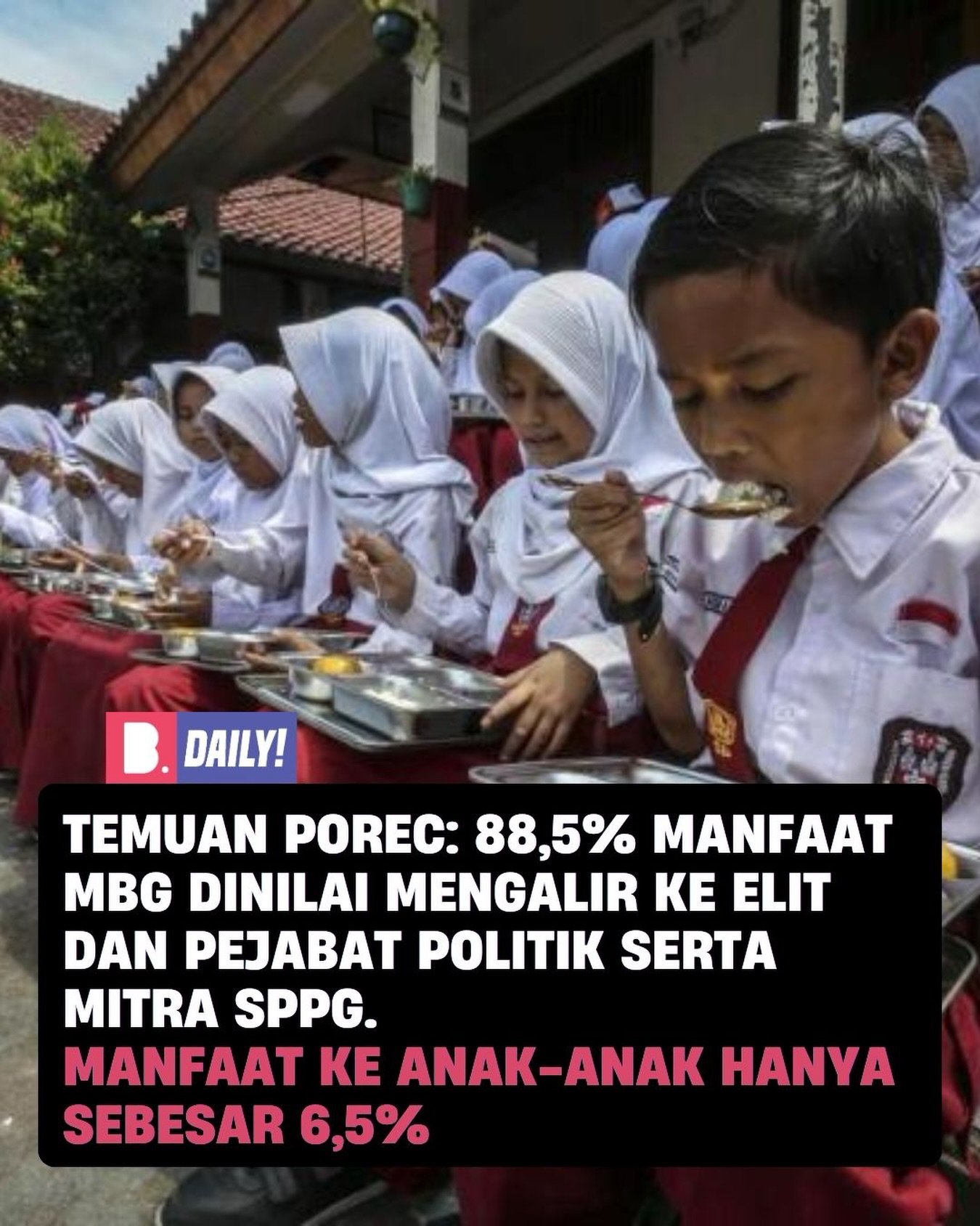 Temuan utama dari laporan berjudul “Siapa yang Diuntungkan dari Program Makan Bergizi Gratis (MBG)?” tersebut meliputi:
