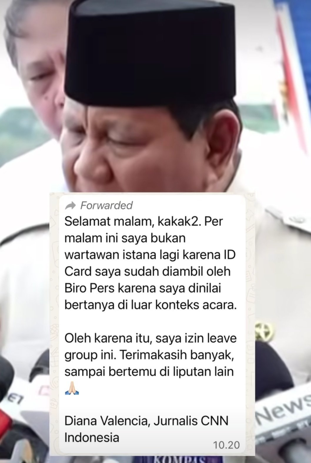KARTU identitas liputan reporter Istana milik seorang reporter CNN Indonesia dicabut karena bertanya kepada Presiden Prabowo Subianto soal masalah dalam program makan bergizi gratis (MBG).
