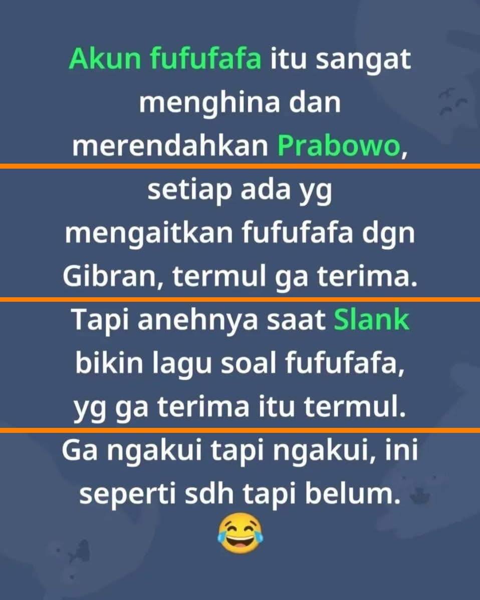 Tapi anehnya saat Slank bikin lagu soal fufufafa, yang ga terima itu termul.