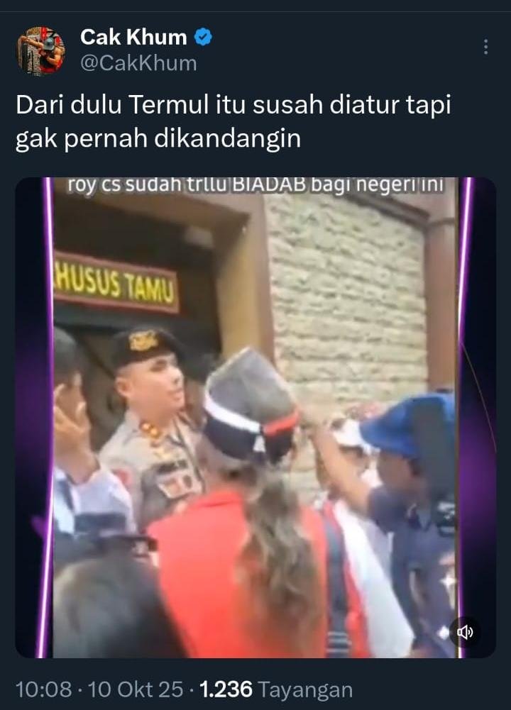“Dari dulu Termul itu susah diatur tapi gak pernah dikandangin,” cuit akun X @CakKhum yang membagikan video.