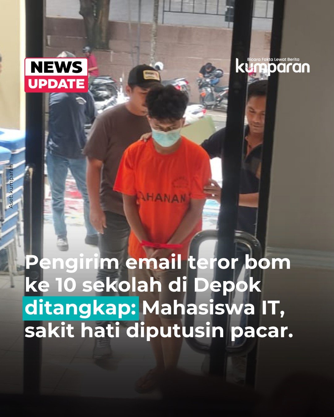 Polres Depok berhasil menangkap HRR (23), seorang mahasiswa jurusan Teknik Informatika di sebuah universitas swasta, yang mengirim email berisi teror ke 10 sekolah di Kota Depok. Aksi tersebut dilakukan pada Selasa (23 Desember 2025) dan menimbulkan keresahan di lingkungan sekolah.