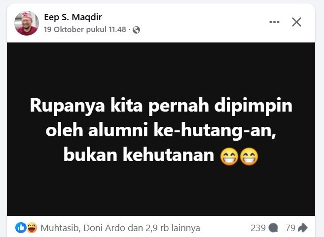 Rupanya kita pernah dipimpin oleh alumni ke-hutang-an, bukan kehutanan 😁😁