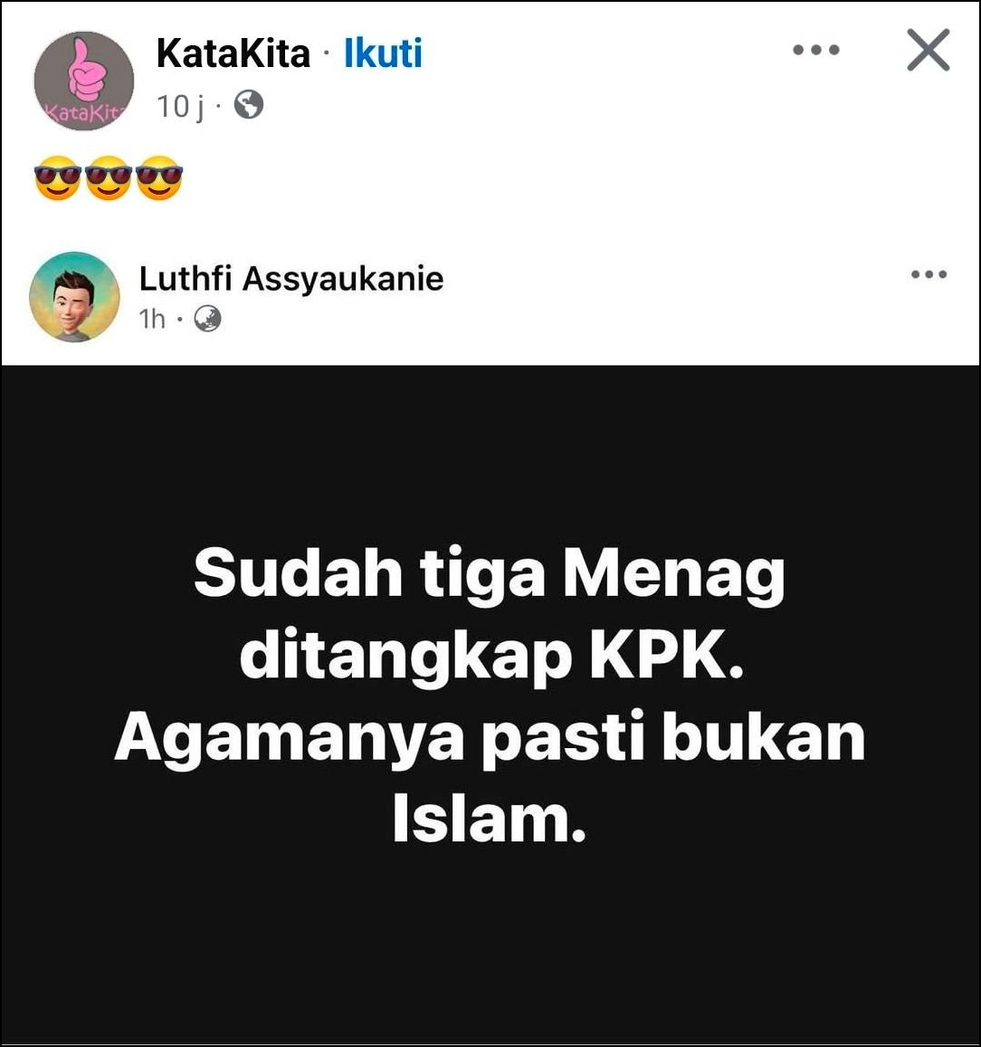 Mengapa Menteri Agama yang Korupsi, kebetulan Beragama Islam, Islam-nya yang disudutkan?