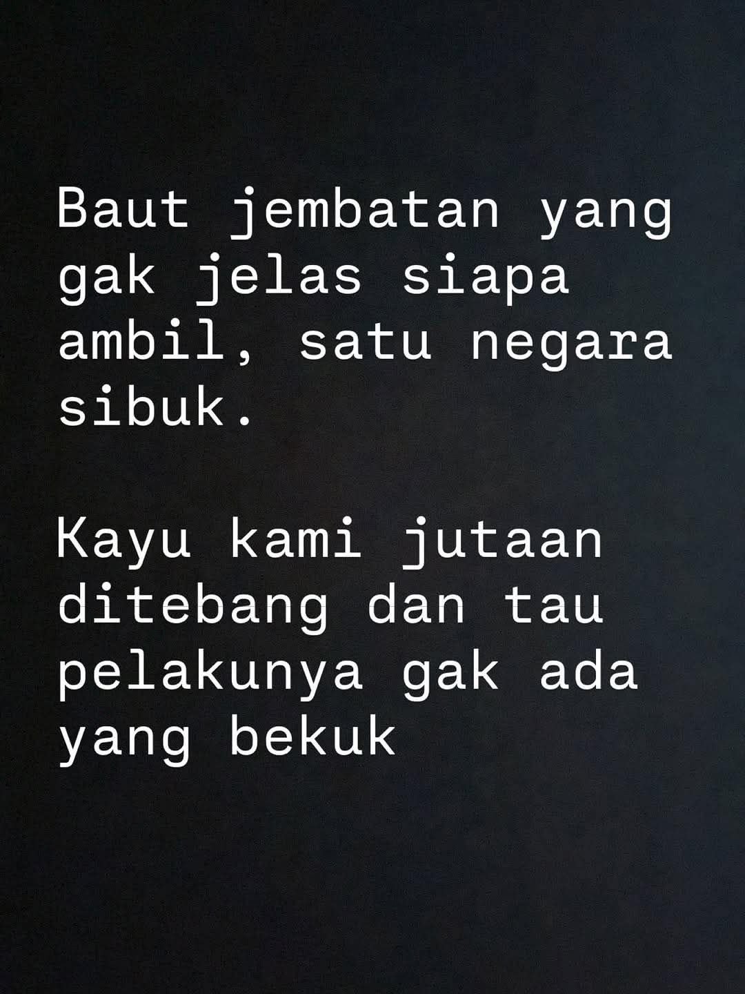 Di negeri ini nuduh Sabotase baut jembatan bisa lebih berharga daripada nyawa rakyat.