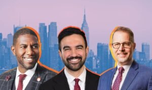 (Jumaane Williams (kiri) Zohran Mamdani dan Mark D. Levine)