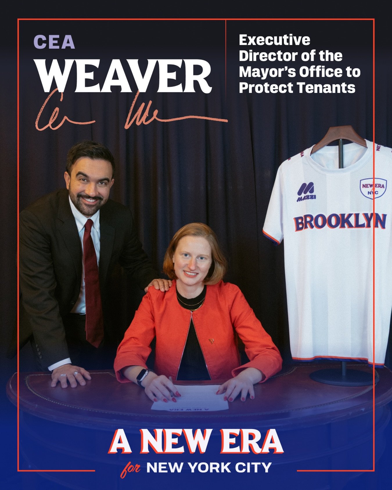Di situ pula Zohran mengumumkan dibentuknya Dinas Urusan Perlindungan Tenant. Lalu mengumumkan siapa yang menjabat kepala dinasnya: seorang wanita yang memang aktivis pembela hak-hak tenant. Yakni Cea Weaver. Kulit putih. Ahli perencanaan kota. Dia sampai mengusap air mata, terharu, ketika diangkat untuk jabatan itu.