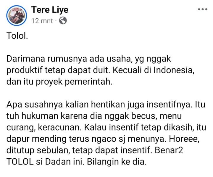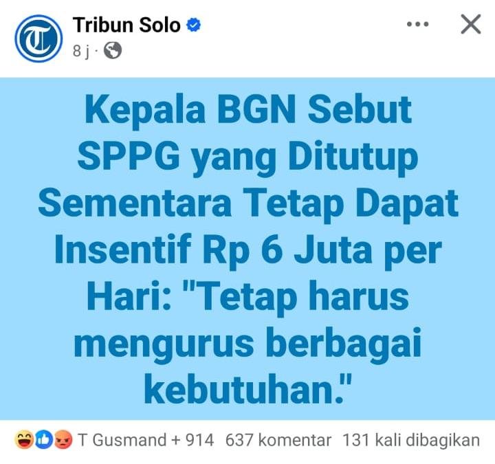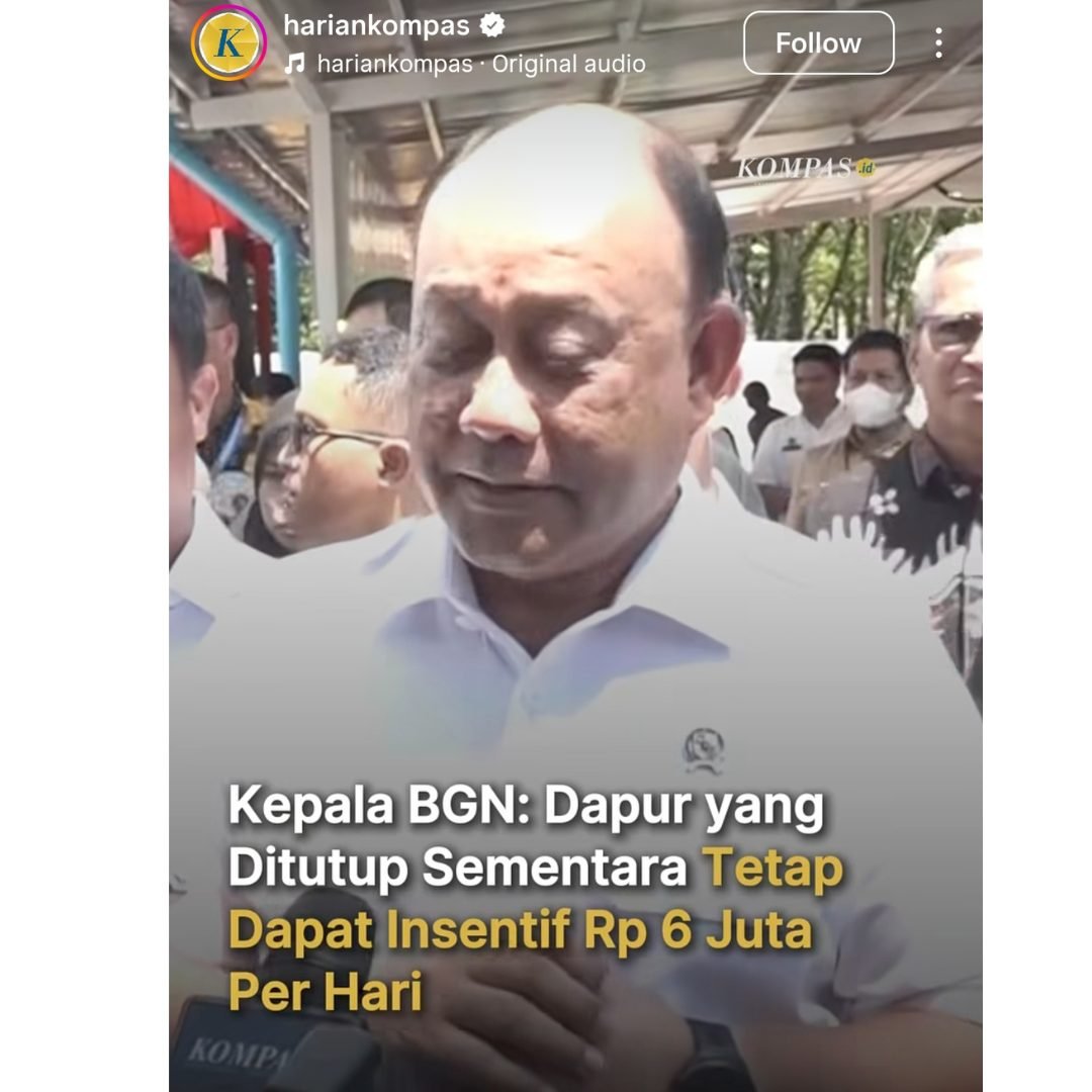 Apa susahnya kalian hentikan juga insentifnya. Itu tuh hukuman karena dia nggak becus, menu curang, keracunan. Kalau insentif tetap dikasih, itu dapur mending terus ngaco sj menunya. Horeee, ditutup sebulan, tetap dapat insentif. Benar2 TOLOL si Dadan ini. Bilangin ke dia.