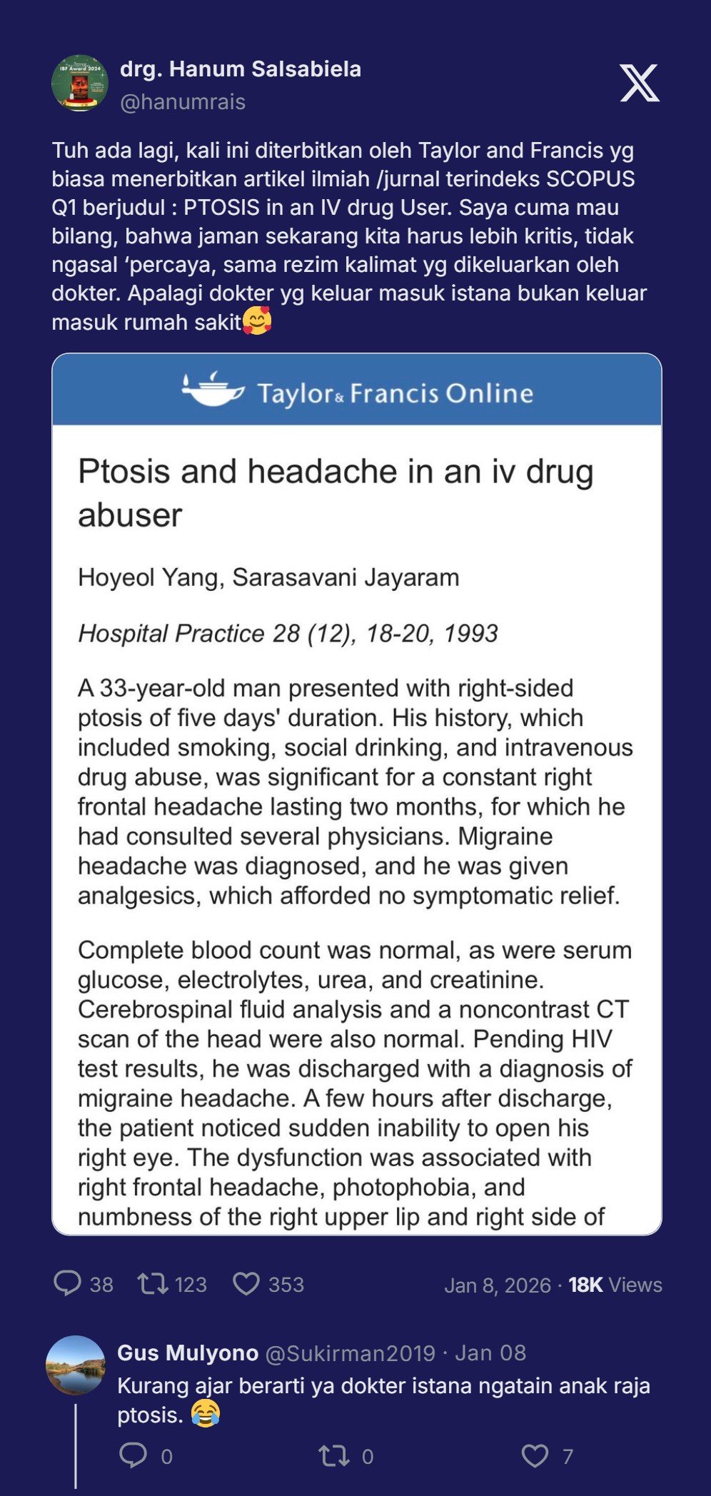 Dokter Tifa menyertakan jurnal penelitian dari AS berjudul: