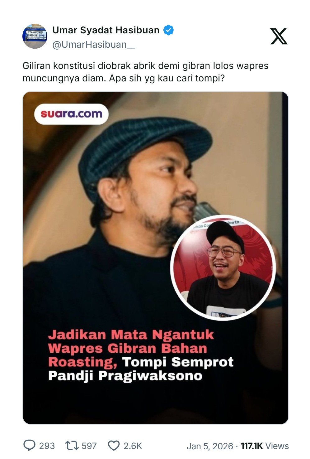 Kritikan Tompi mendapat balasan telak dari Umar Syadat Hasibuan di akun X @UmarHasibuan__.