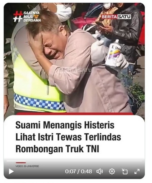 Di CCTV terlihat motor yang diboncengi korban ditabrak truk TNI dari belakang, korban jatuh, terlindas. Meninggal di tempat.