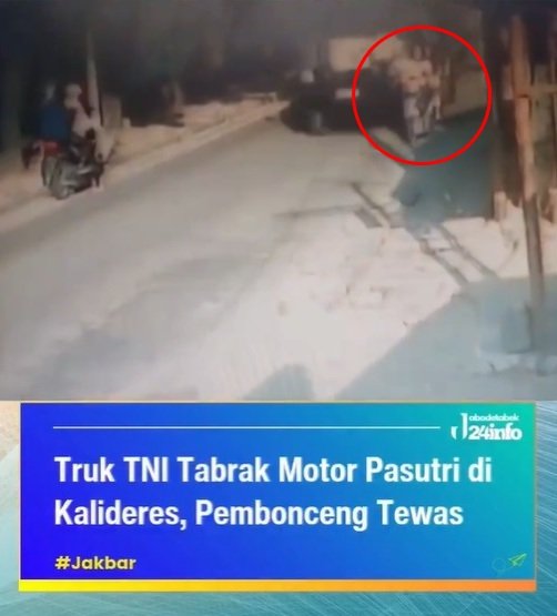 Di CCTV terlihat motor yang diboncengi korban ditabrak truk TNI dari belakang, korban jatuh, terlindas. Meninggal di tempat.