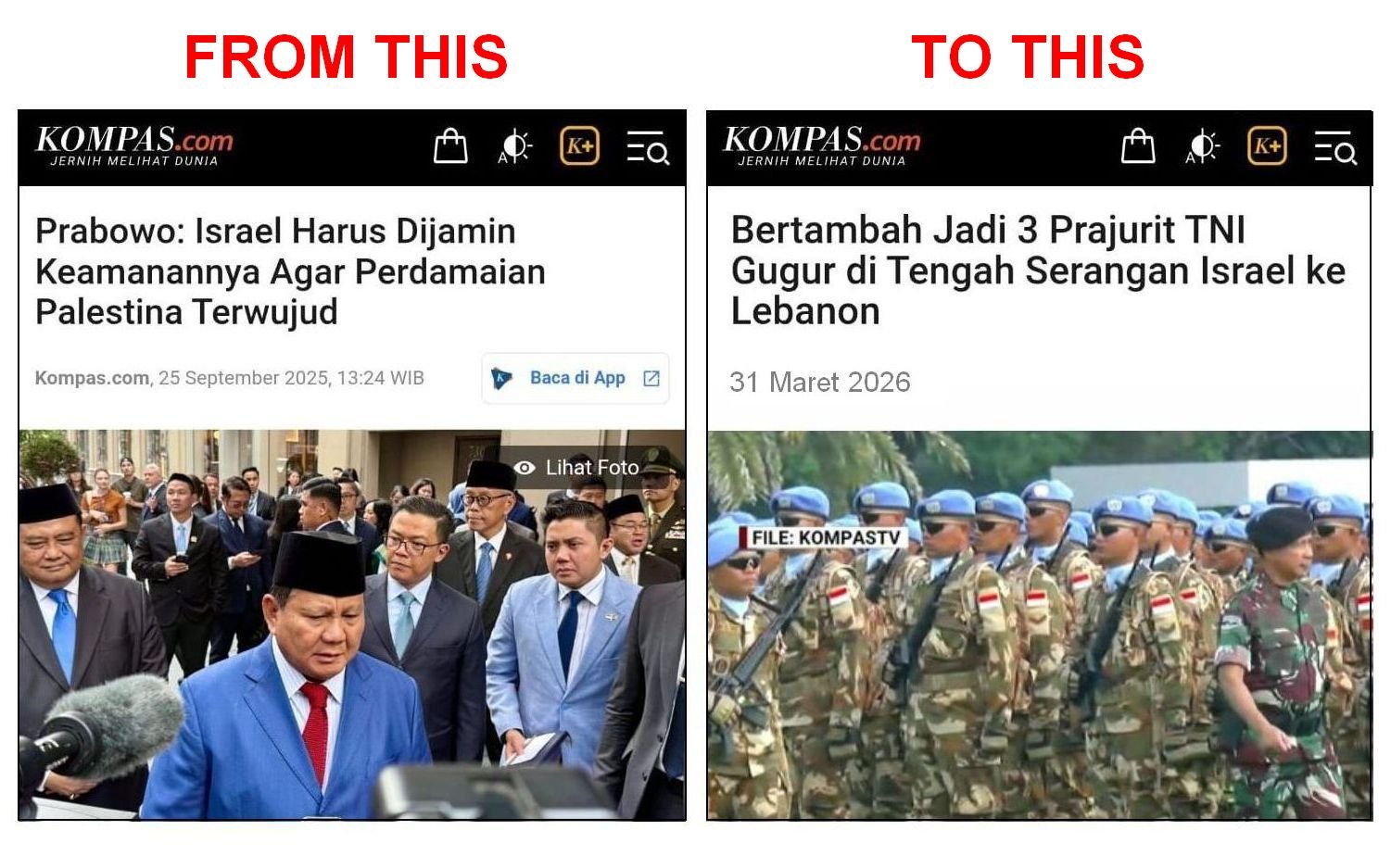 Tiga prajurit TNI yang tergabung dalam misi penjaga perdamaian PBB (UNIFIL) telah gugur di Lebanon dalam kurun waktu dua hari terakhir oleh serangan dan bom Israel.