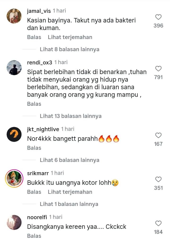 Video ini menuai komentar luas netizen, semuanya negatif, gak ada yang memuji atau mendukung aksi pamer duit apalagi buat selimutin bayi.