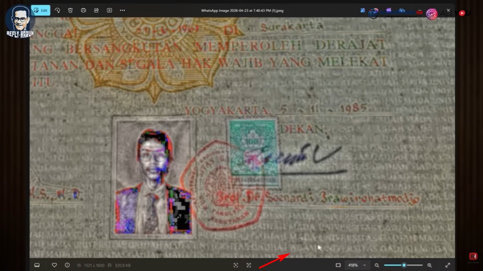 - Sedangkan yang ditampilkan Rismon di iNewsTV secara kasat mata embos dan watermarknya sudah KELIHATAN (tanpa di zoom, tanpa pakai alat khusus sudah terlihat. walaupun setelah dilihat secara seksama ternyata terbukti ada yang typo GADHAJ ADAM).