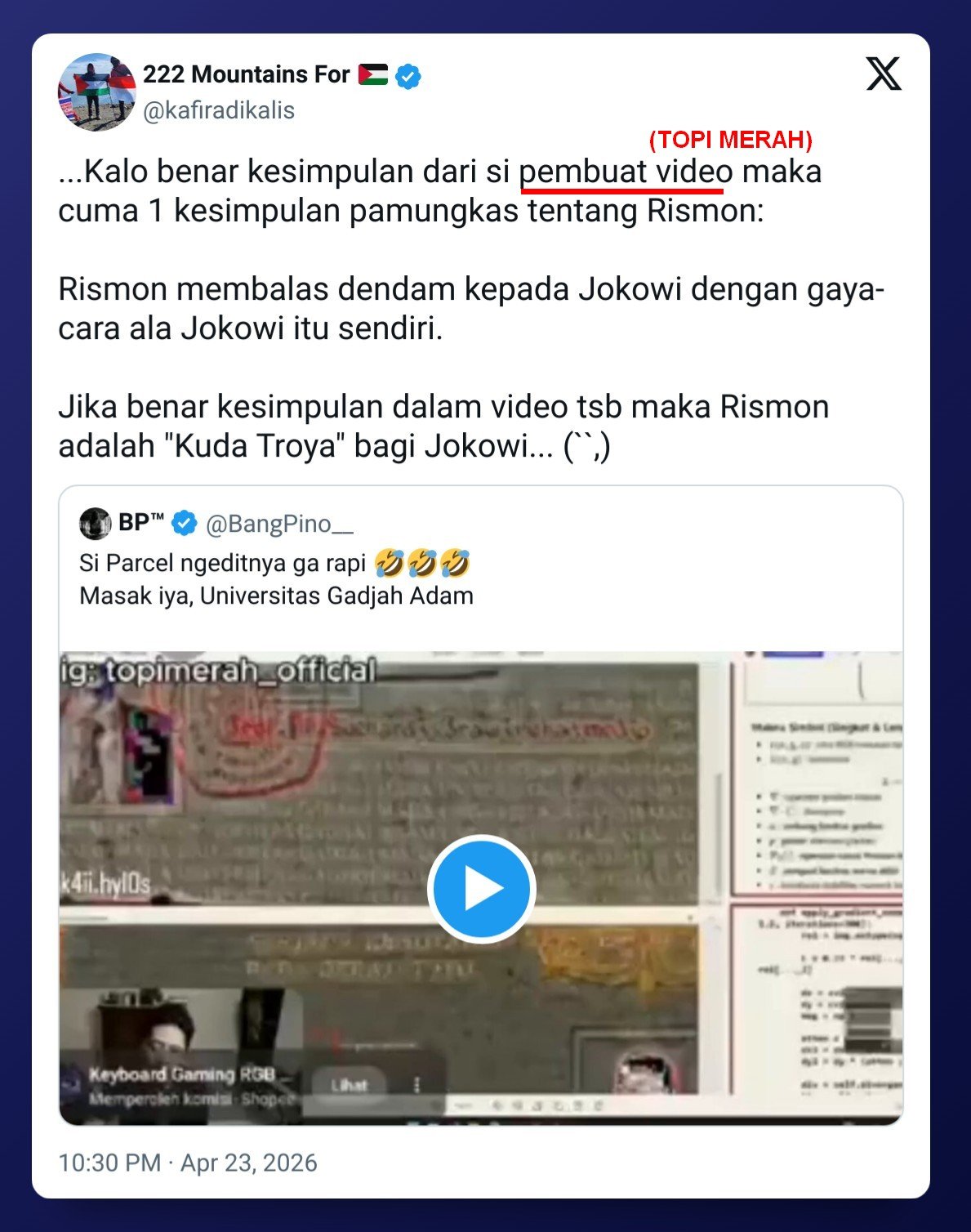 - Akun Youtube TOPI MERAH kemudian menganalisa bukti yang ditampilkan Rismon