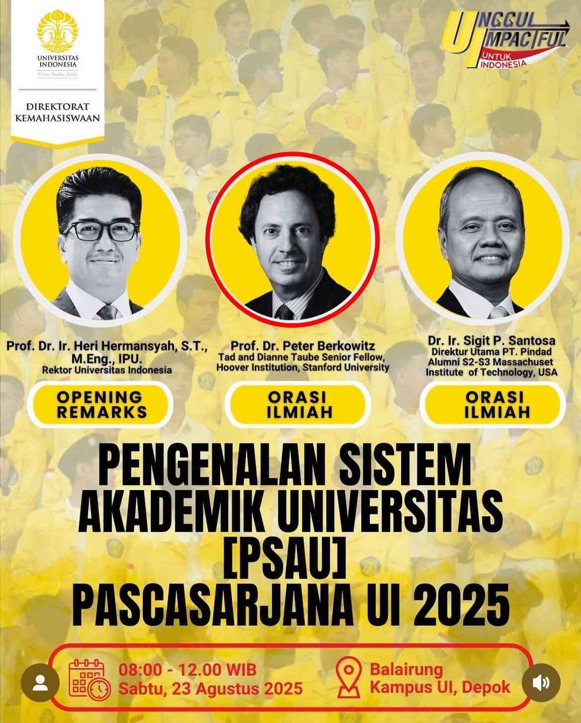 Universitas Indonesia (UI) mengundang Peter Berkowitz; seorang Zionis dan pembela Genosida Israel, sebagai pembicara pada Orientasi Program Pascasarjana UI 2025 pada Sabtu, 23 Agustus 2025.