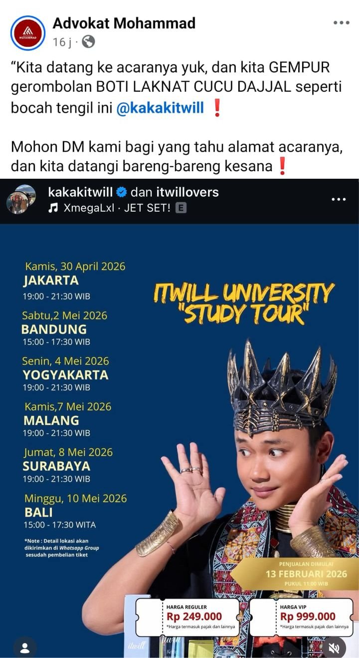 Untuk itu kami meminta kepada Kepolisian untuk membatalkan kegiatan yang dilakukan oleh Itwill dan yang serupa, selamatkan generasi muda Indonesia.