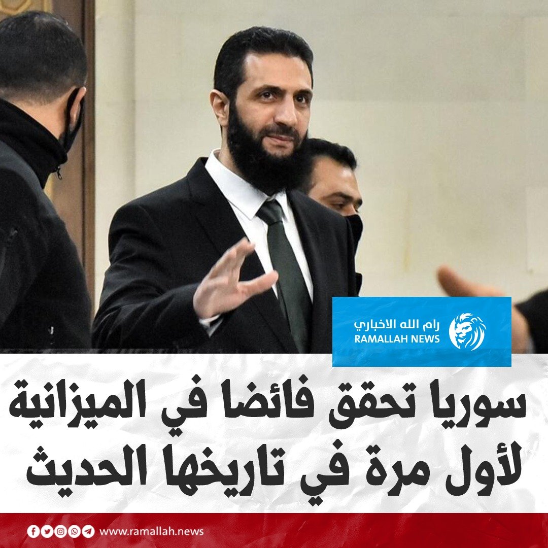 Di bawah kepemimpinan Presiden Ahmed al-Sharaa, Suriah mencapai surplus anggaran untuk pertama kalinya dalam sejarah modernnya, diperkirakan sebesar 45 juta dolar AS.