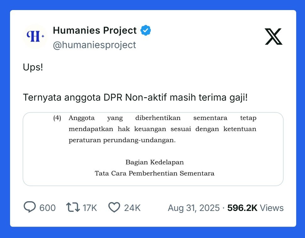 Meski dinonaktifkan, Ahmad Sahroni, Nafa Urbach, Eko Patrio dan Uya Kuya tidak dipecat dan masih akan mendapatkan hak-haknya sebagai anggota dewan.