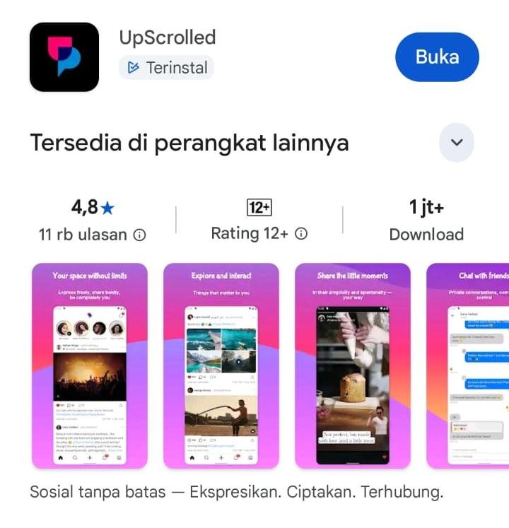 Hingga Jumat (30/1/2026), UpScrolled telah diunduh lebih dari 1 juta unduhan di Google Playstore.