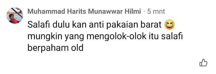 “Salafi dulu kan anti pakaian barat, mungkin yang mengolok-olok itu salafi berpaham old,” timpal yang lain.