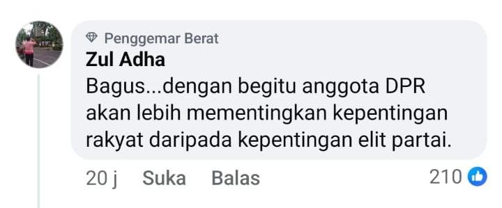 Sebaliknya, ketika rakyat meminta anggota DPR untuk diberhentikan karena tidak lagi mendapat legitimasi dari konstituen, anggota tersebut justru dipertahankan oleh partai politik.