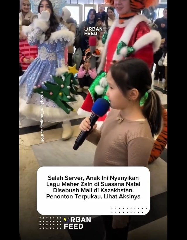 Sebuah video beredar online menjadi viral mendunia yang memperlihatkan seorang gadis kecil mengejutkan seluruh pusat perbelanjaan dengan penampilannya menyanyikan lagu Islami saat momen Natal.