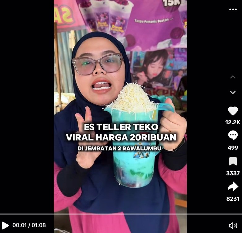 Es teller yang biasanya dijual dengan harga 15 ribu/cup, sekarang harganya dibanting jadi 20-25 ribu per teko