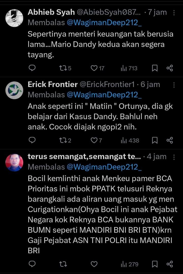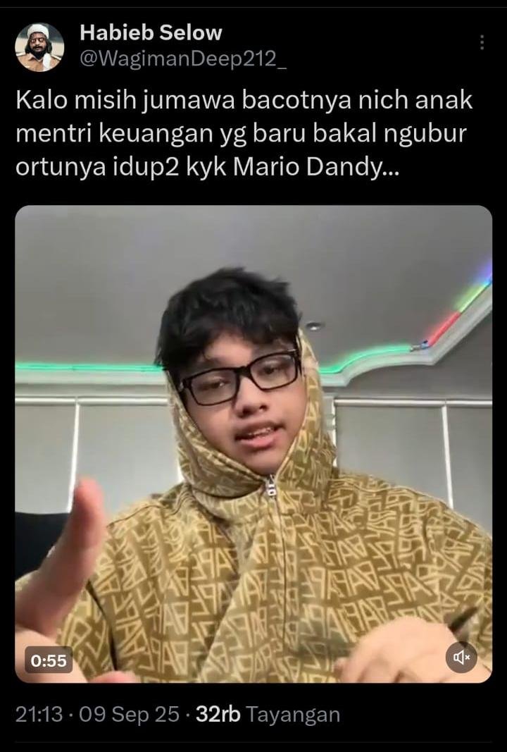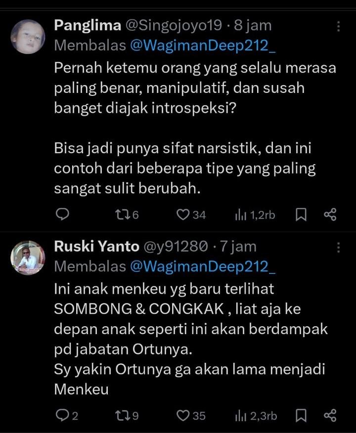 Sebelumnya, anak Menkeu ini juga viral dengan postingannya yang menyebut Menteri Keuangan Sri Mulyani adalah agen CIA yang menyamar jadi Menkeu.
