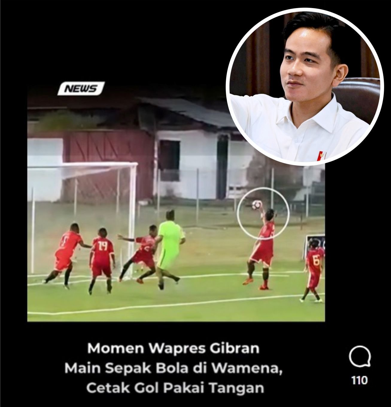 Yang menjadi perhatian netizen adalah saat Gibran mencetak gol, bukan pakai kaki atau kepala sebagaimana lazimnya permainan sepakbola yang normal, tapi Gibran memakai tangannya untuk mencetak gol ke gawang.