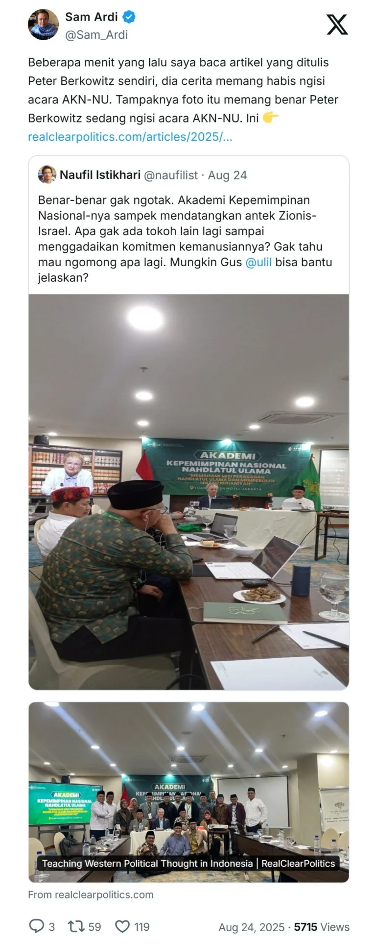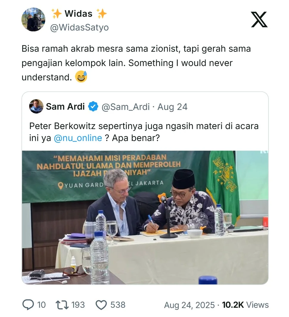 Peristiwa ini diduga kuat sebagai kelanjutan dari jejaring dan wacana yang dibangun pasca-R20. Sekali lagi, PBNU harus menanggung konsekuensi simbolik, meski kegiatan tersebut disebut sebagai personal.