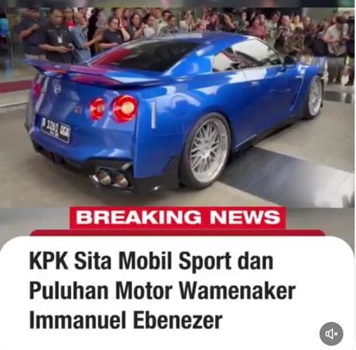 KPK menyita sejumlah barang mewah hasil OTT terhadap Wamenaker Immanuel Ebenezer alias Noel, mulai dari uang tunai, puluhan motor, hingga mobil. Tampak adanya mobil sport di antara mobil sitaan tersebut.
