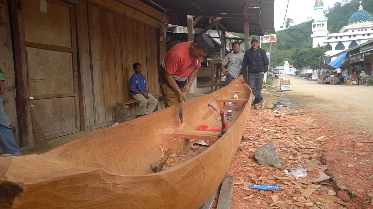 Selama proses pembuatan sampan kecilnya, Salihin mengandalkan kekuatan tangannya sendiri. Ia memahat dan merakit tanpa peralatan listrik. Sebab setrum baru mengalir ke kampungnya beberapa hari lalu.