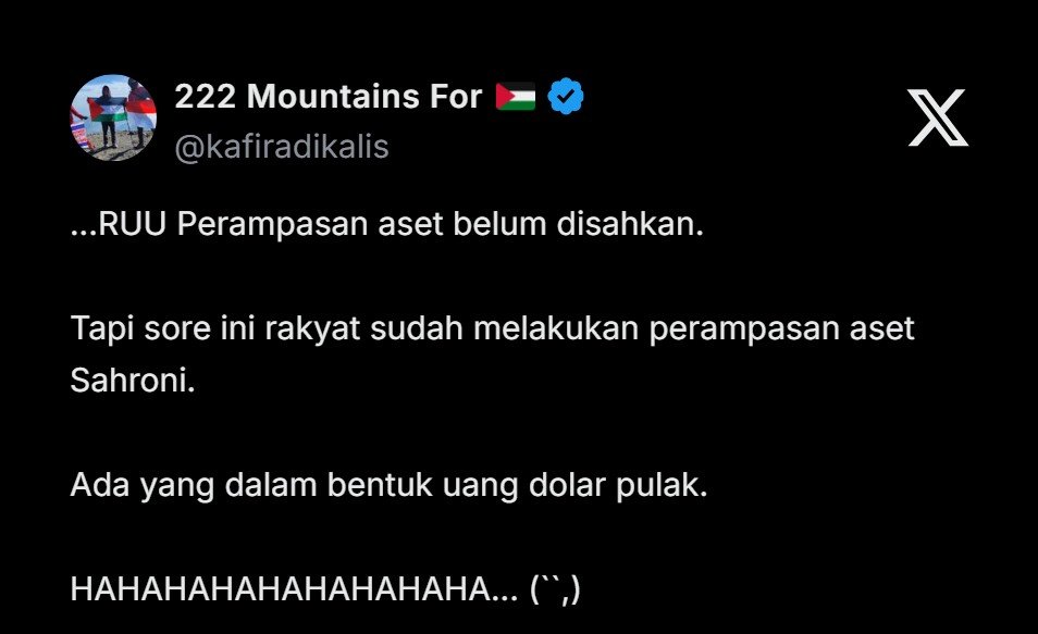 UU PERAMPASAN ASET KORUPTOR belum disahkan DPR, tapi rumah anggota DPR sudah dirampas massa. Ironi.