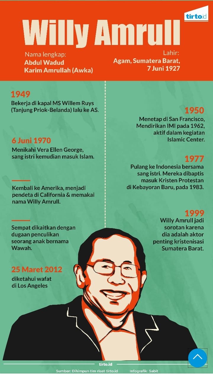 - Willy Amrul akhirnya kalah secara iman dan masuk Kristen di tahun 1983, dua tahun setelah wafatnya Buya Hamka. Dibaptis oleh pendeta Gerard Pinkston diberi nama baptis William, akhirnya dikenal dengan nama Willy Amrul.