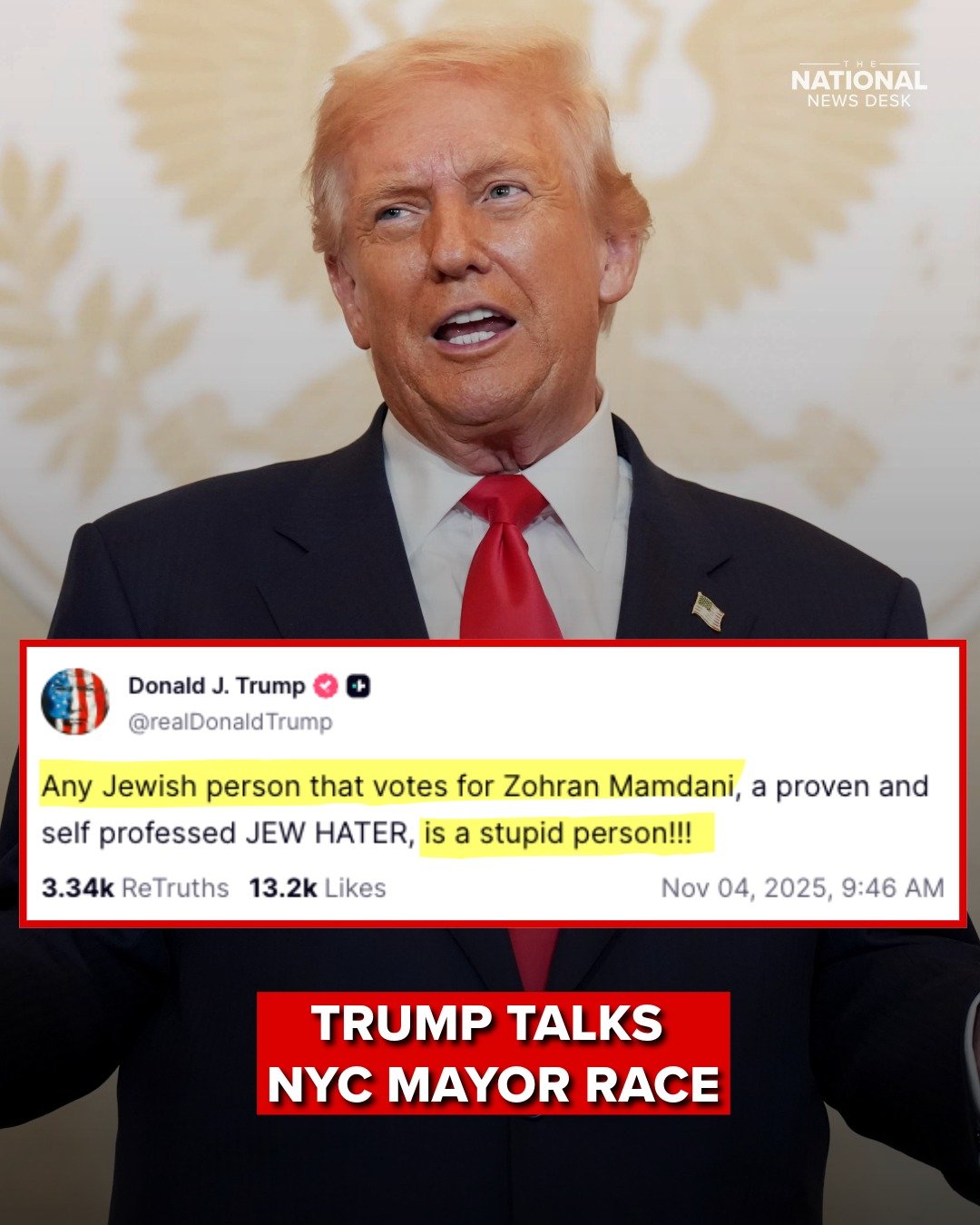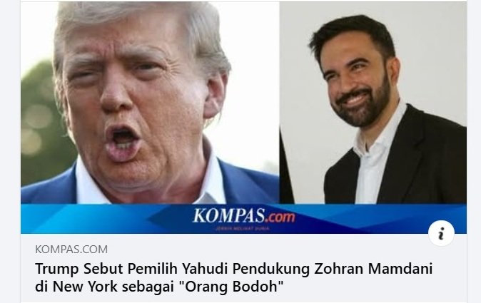 Dalam unggahan di media sosial Truth Social pada Selasa (4/11/2025), Trump menulis tentang orang Yahudi yang memilih Zohran Mamdani, ia sebut orang yang bodoh.