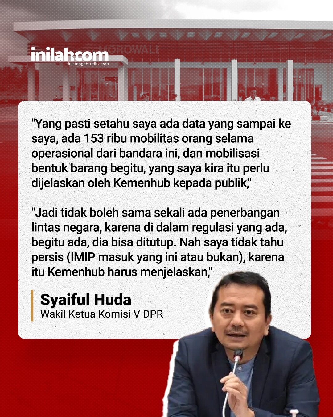 Wakil Ketua Komisi V DPR, Syaiful Huda, mendesak Kementerian Perhubungan (Kemenhub) segera beri penjelasan lengkap soal status dan operasional Bandara Indonesia Morowali Industrial Park (IMIP).