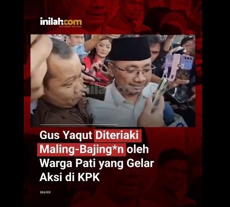 Massa kemudian meneriaki Yaqut dengan sebutan maling. Menurut mereka, dugaan korupsi yang menyeret Yaqut sama dengan Bupati Pati Sudewo.